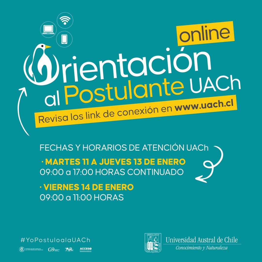 La Universidad Austral de Chile ofrecerá “Orientación Online al Postulante”, lo que permitirá a las y los estudiantes y sus familias resolver diversas dudas sobre carreras, gratuidad, beneficios, aranceles, entre otros aspectos involucrados en esta importante decisión.