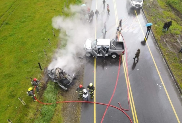 Un nuevo accidente se produjo esta tarde en la ruta internacional paso Hua-hum sector paillahuinte alto comuna de Panguipulli, en lugar colisionó una camioneta y un vehículo menor, el vehículo menor se incendió con su ocupante al interior, conductor habría fallecido en el lugar, al respecto el fiscal Alejandro Ríos indicó lo siguiente a Pautalosríos.cl, el accidente se produjo a eso de las 17:45 horas.