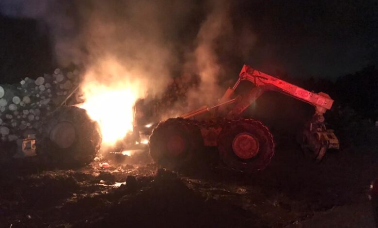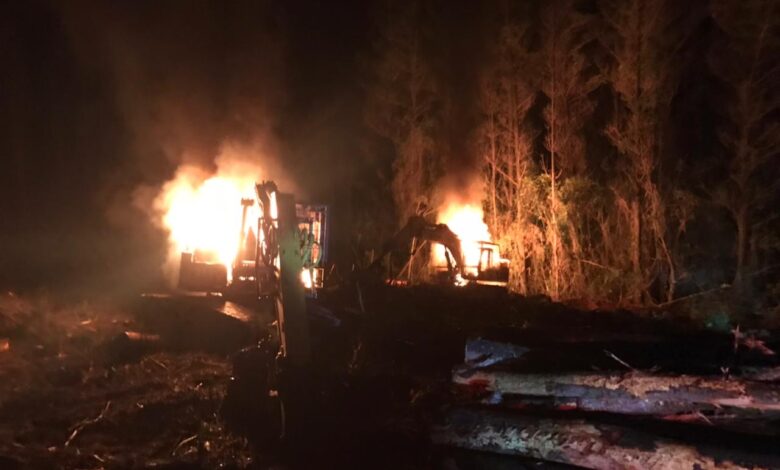 Un nuevo atentado incendiario sacude a los Ríos, se quemaron 3 cabezales, procesadores, un rodillo y retroexcavadora en Punucapa