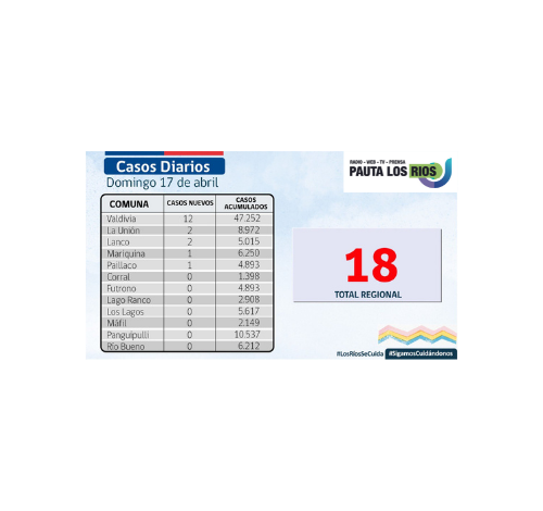 REPORTE] El SEREMI de Salud, Dr. José Llambías, informó que hoy se reportaron 18 nuevos casos de COVID-19 en Los Ríos .