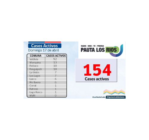 A la fecha, hay 154 casos activos, de los cuales 92 corresponden a la comuna de Valdivia y 13 a la comuna de Mariquina.