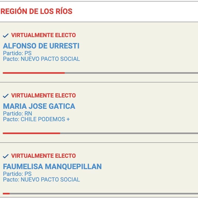 🟢Actualiza Senadores Servel: Senadores electos en la región de Los Ríos con el 41,18% escrutado