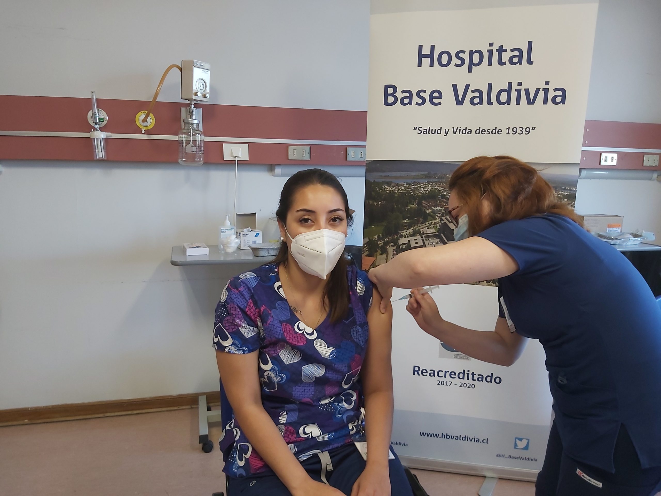 Vacunación en Hospital Base de Valdivia , en Primera jornada permitió inocular a más de setecientos funcionarios esperando cumplir con la meta de vacunar al 97% del personal al día viernes.