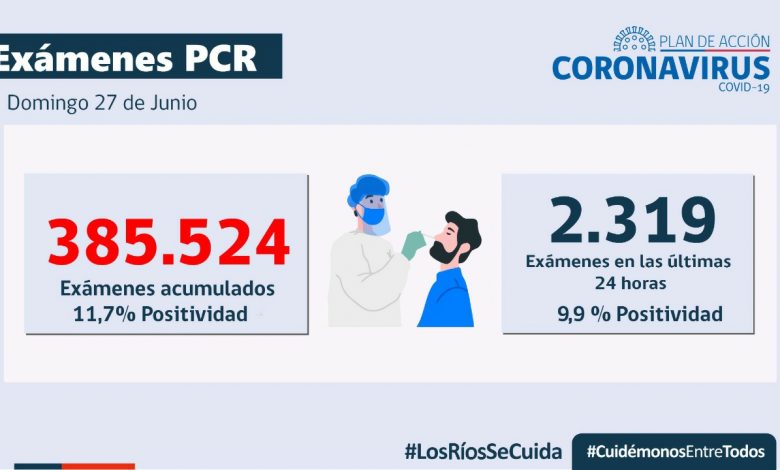 La Red de Laboratorios de Los Ríos procesó en las últimas 24 horas, 2.319 muestras, arrojando un índice diario de positividad de 9,9 %. La cantidad total de exámenes PCR realizados en la región asciende a 385.524 con una positividad acumulada de 11,7%.