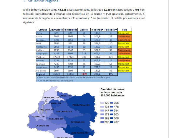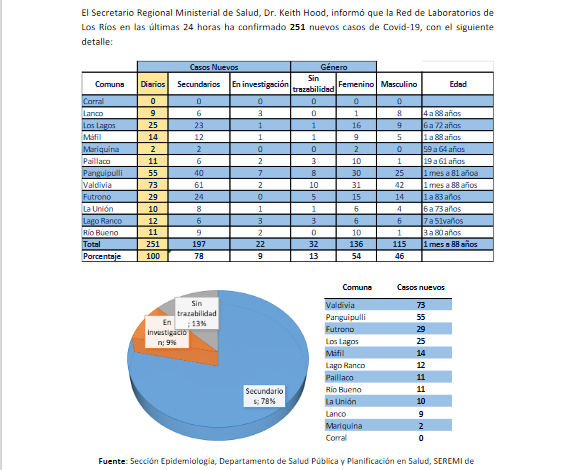 REPORTE] El SEREMI de Salud, Keith Hood, informó que hoy se reportaron 251 nuevos casos de COVID-19 en Los Ríos