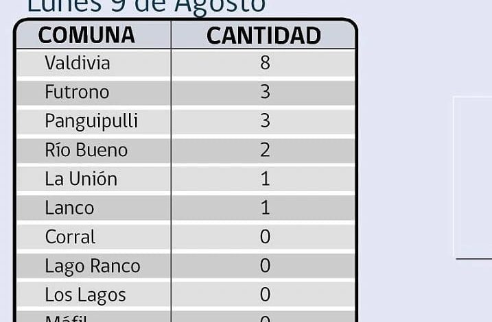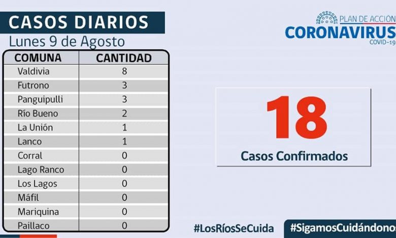 Valdivia , con menor cantidad de casos diarios, 8 contagios nuevos se informan hoy.