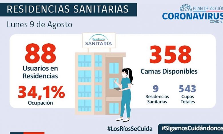 Respecto a las Residencias Sanitarias, a la fecha, 88 personas están haciendo uso de estos espacios de aislamiento, lo que representa un porcentaje de 34,1% de camas ocupadas. Al día de hoy, quedan 358 camas disponibles en estos espacios de aislamiento.
