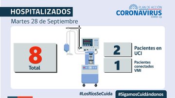 En cuanto a las hospitalizaciones, 8 pacientes se mantienen internados en distintos recintos asistenciales de la región, de los cuales 2 se encuentran en la Unidad de Cuidados Intensivos (UCI), 1 de ellos conectados a ventilación mecánica. De los pacientes que se encuentran en UCI, 1 de ellos, no tienen su esquema de vacunación completa.