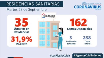 Respecto a las Residencias Sanitarias, a la fecha, 35 personas están haciendo uso de estos espacios de aislamiento, lo que representa un porcentaje de 31,9% de camas ocupadas. Al día de hoy, quedan 162 camas disponibles en estos espacios de aislamiento.