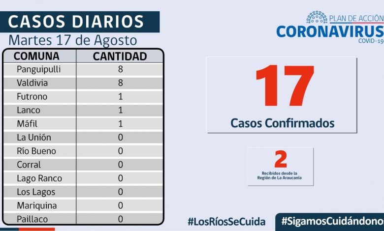 Valdivia y Panguipulli con 8 casos diarios para Covid-19.
