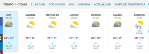 Ayer Domingo a las 21:00 horas sensación térmica se mantenía en torno a los 20°