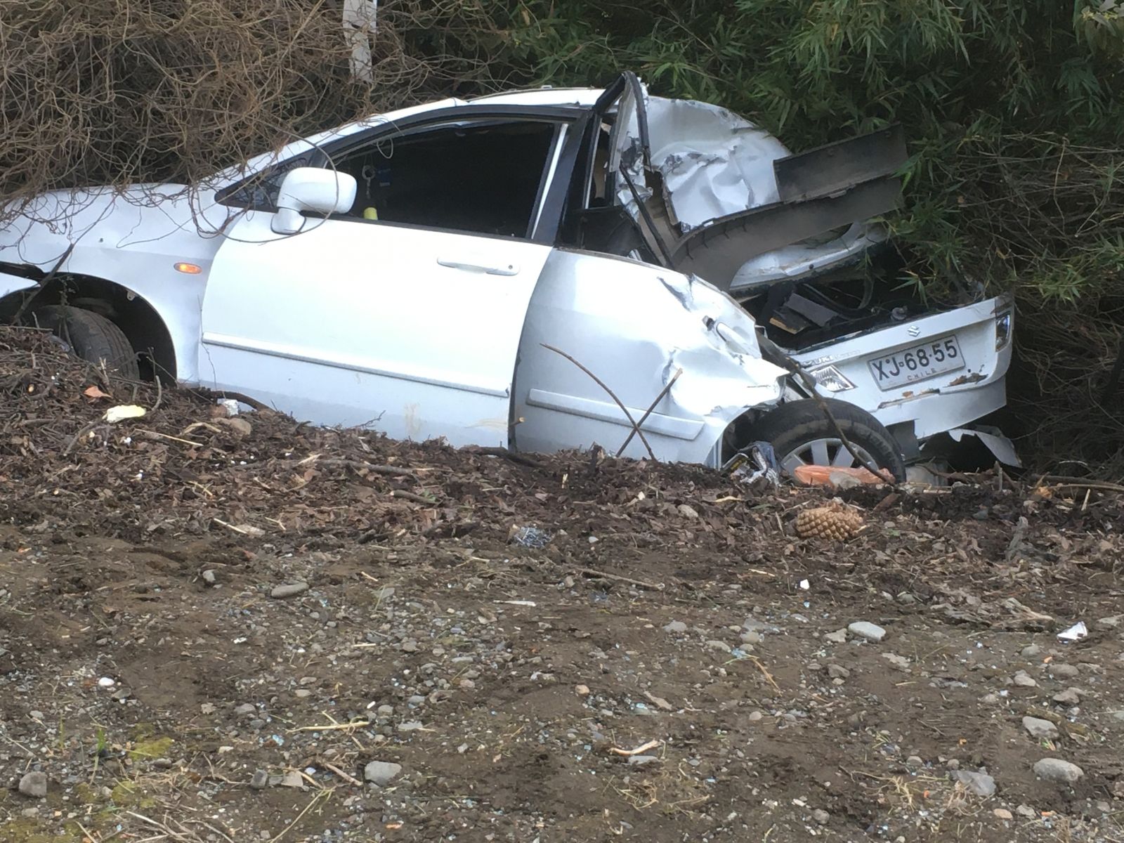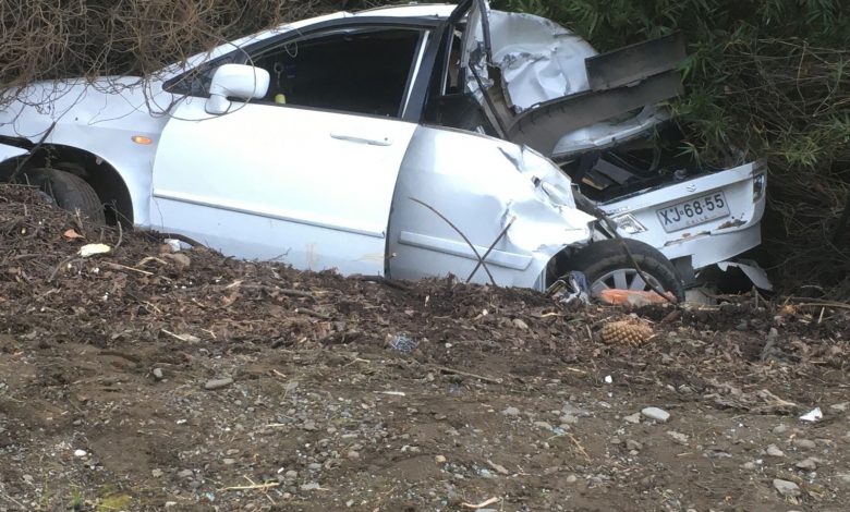 Vehículo menor impactó a un camión para luego desbarrancar en la ruta entre Paillaco y Los Lagos.