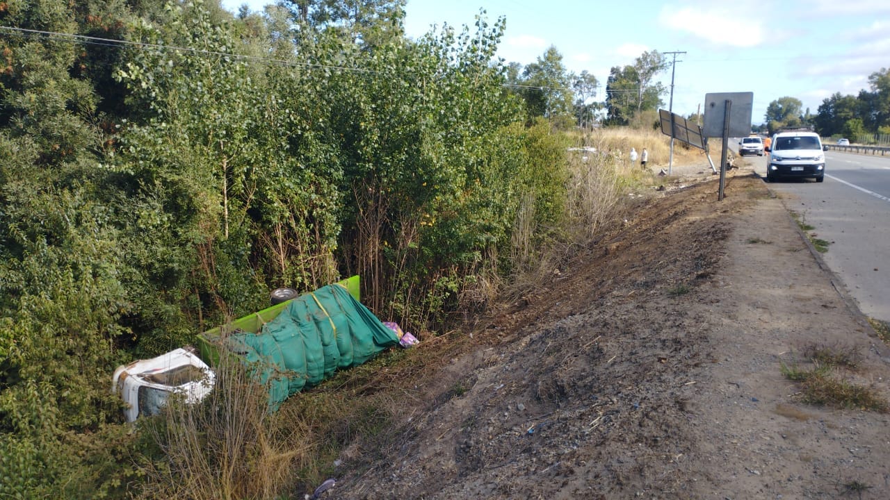 Accidente en el km 803.600 norte a Sur, Sector Máfil, camión 3/4 volcó aún costado de la ruta 5 Sur, el conductor solo con lesiones leves.