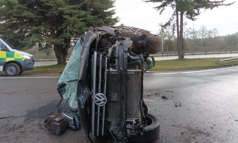 D/C de cuasidelito de lesiones en volcamiento de  Automóvil  deja dos personas lesionadas en ruta 5 sur, a la altura del sector Ciruelos.