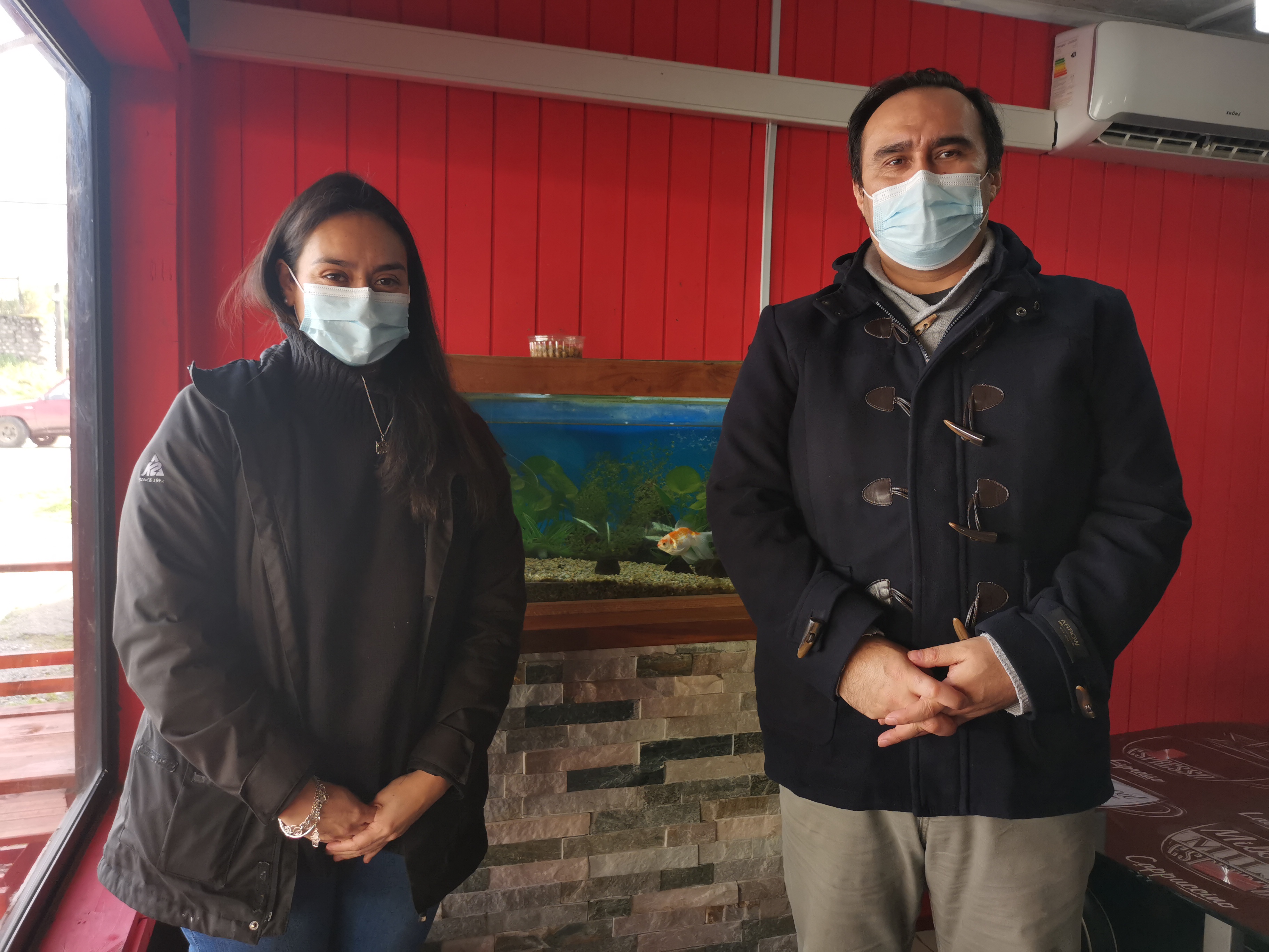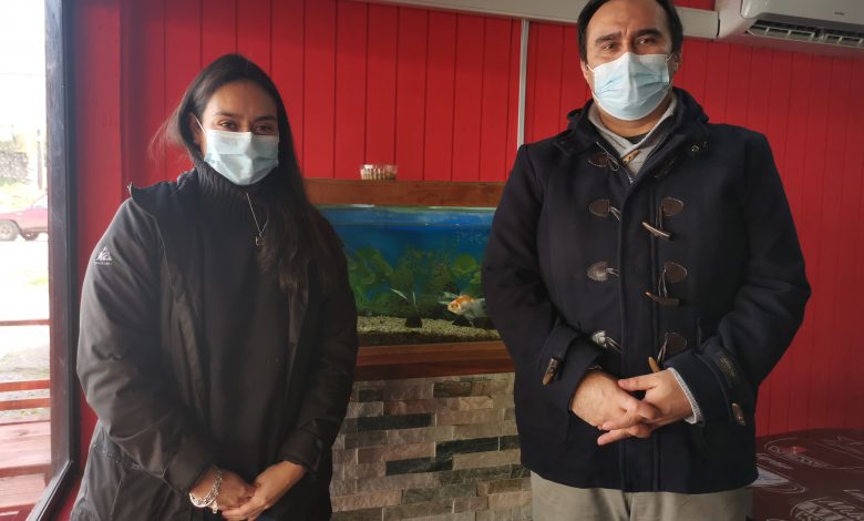 foto 1. Maria Pacheco, dueña de Kamysushi y Carlos Riquelme director de Fomento Los Rios